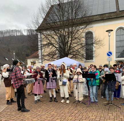 Der Samstag stand ganz im Zeichen der Dorffasnacht – auch wenn das Wetter uns diesmal herausforderte. Trotz Regen ließen wir uns die Laune nicht verderben und spielten gemeinsam mit der Jugend und dem Musikverein Degerfelden. Zusammen sorgten wir für fröhliche Töne und zeigten, dass gute Musik graue Wolken trotzen kann.